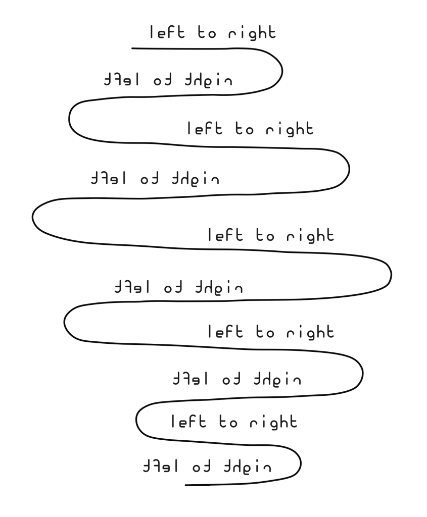Boustrophedon is a style of writing in which alternate lines are reversed and mirrored. The term comes from Ancient Greek and translates to “like the ox turns whilst plowing”. Turn Like an Ox is an embodied manifestation of Boustrophedon. Shoes tread text into the ground. The words are both taken with the body and left behind. Footprints tread text into the ground, they cross paths and create new meanings, or overlap and erase one-another. With our feet we ask questions, offer wisdom, speak nonsense, repeat mantras, speculate, contemplate, regurgitate.